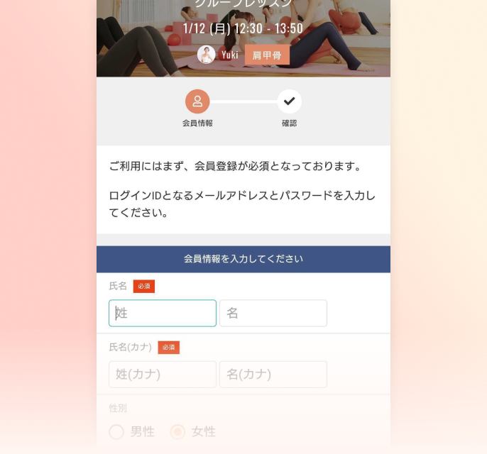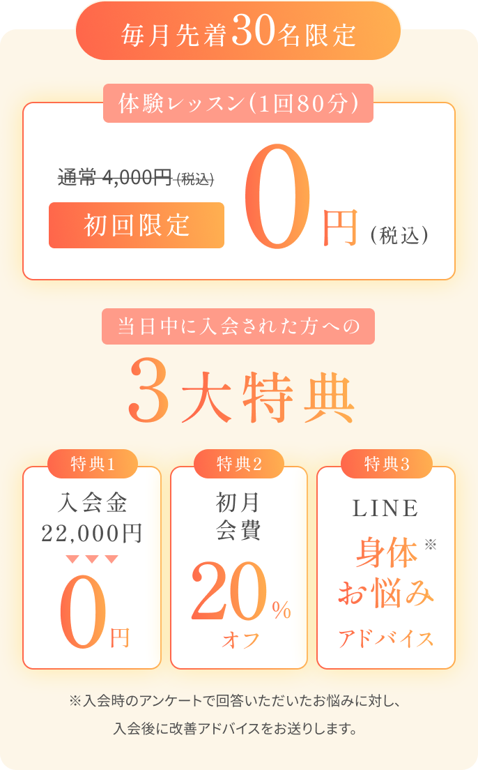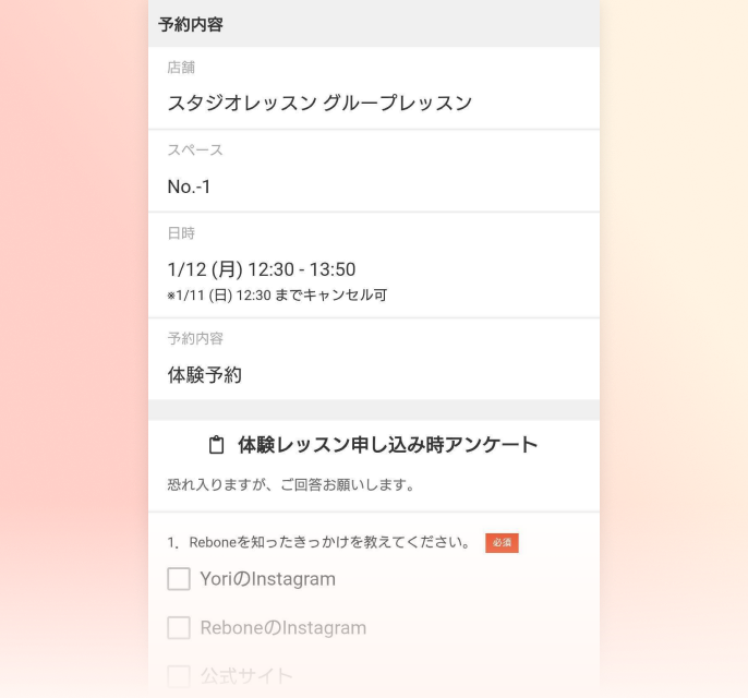レッスンの参考のため、来店のきっかけや運動歴など、アンケートへご回答ください。