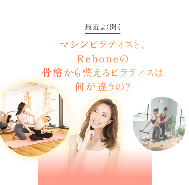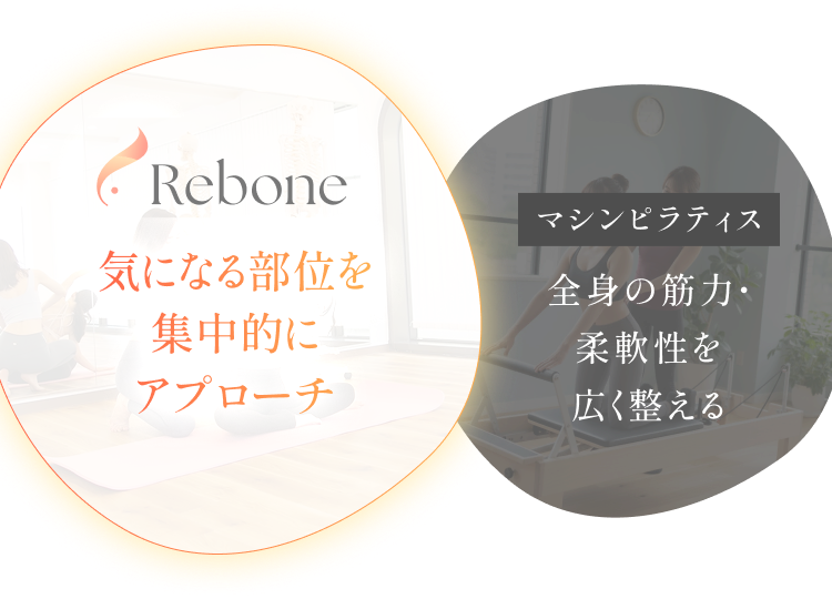 一般的なマシンピラティスが全身をまんべんなく整えるのに対し、Reboneは悩みの原因へ集中的にアプローチします。