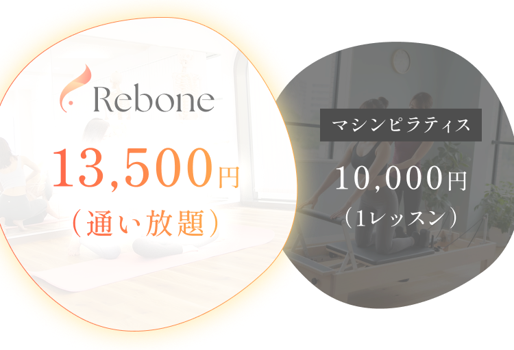 マシンピラティスの中でも主流のパーソナルレッスンは、1回約10,000円前後。 身体を変えるためには定期的に通う必要がありますが、Reboneならその費用の心配もありません。 月額13,500円(平日会員)で通い放題なので、効果を定着させるまで集中して通えます。
