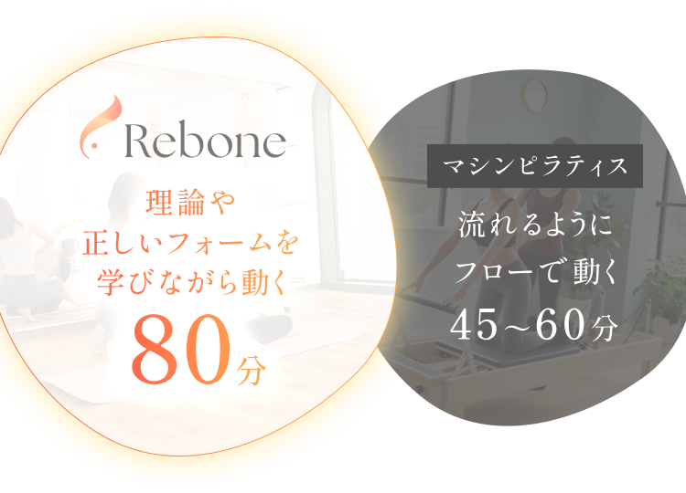 ここでは、料金、ツールの扱い、レッスン時間、効果へのアプローチの4つの視点から、今流行りのマシンピラティスとReboneとの決定的な違いを明確にご説明します。