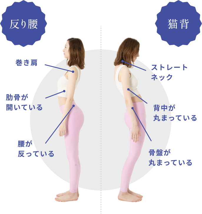 例えば、こんな「姿勢のクセ」がボディラインや不調に影響しているかも...