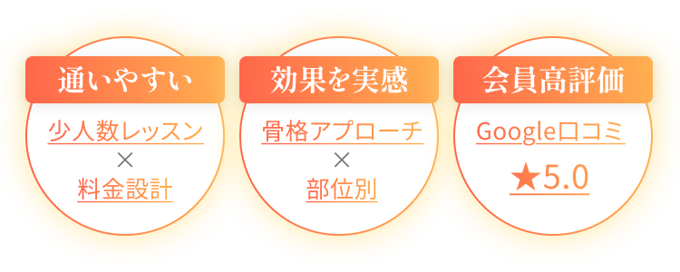 ただなんとなく動かすのではなく、狙った場所に深く効かせることで、レッスン後も使った感覚が持続。日々の何気ない動作もトレーニングに変わり、身体に負担をかけない使い方が自然と身につきます。