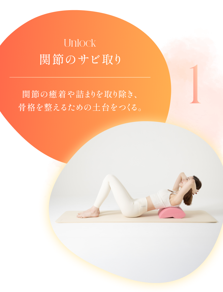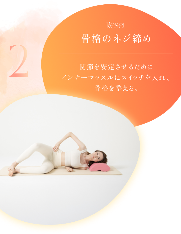姿勢改善に特化した、骨格の形状に沿った専用ツールを使用。ピラティスマシンのように負荷の調整も不要です。ツールを通してより深い感覚で身体を整え、"無意識でも美しい姿勢"を叶えます。